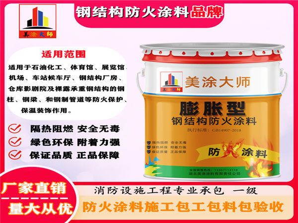 室外超薄型钢结构平阳防火涂料是一种由复合材料、阻燃材料、防火填料等组成,并选用最新型的阻燃剂、发泡、发炭、催化剂等加工而成的新型平阳防火涂料。该涂料涂层薄、用量少、耐火时间长,粘结力强,耐候、抗冲击、耐冻融性好。并具有较好的耐化工大气腐蚀性,涂层遇火时迅速膨胀增厚,形成发泡致密、均匀的隔热层,延长了耐火时间,从而达到防火保护作用。耐火时间根据等级不同可达0.50 h -2.00 h不等。
